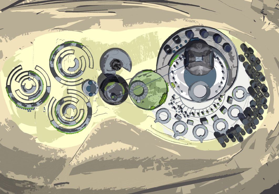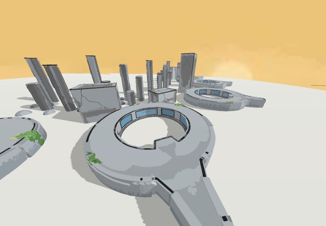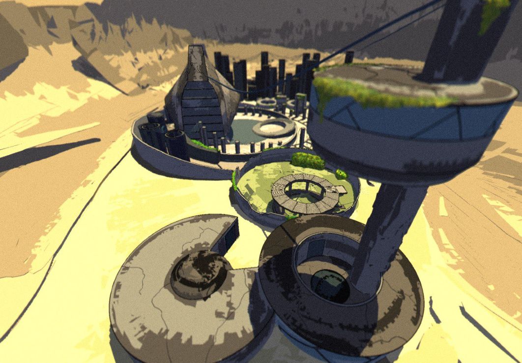 Olinka, the utopian city envisioned by Dr. Atl, where creative and visionary minds would live. These 3D models, created using Feather 3D software, offer an idea of how the city might look in the future, after a catastrophic event. The concept was designed to be developed as a video game for the Centro de Cultura Digital in Mexico City in 2025.
